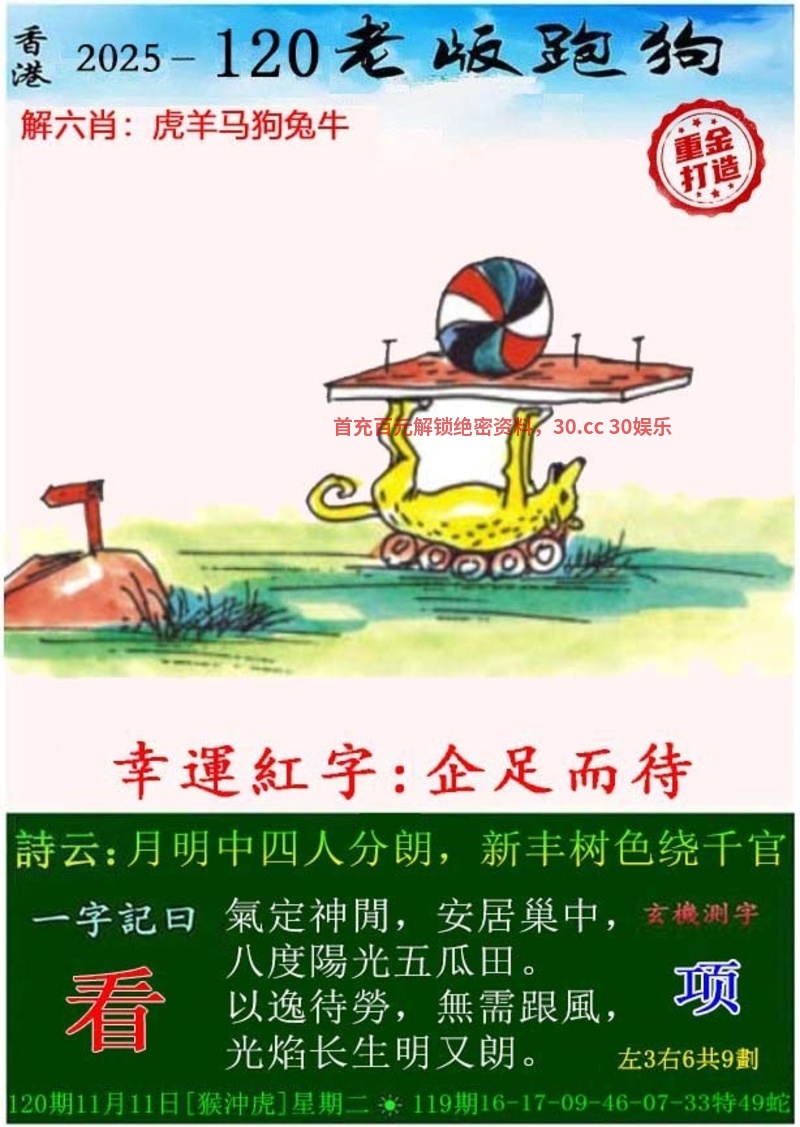 120期:今期牛狗蛇看定,特碼旺大和单出开牛41准 ①杀肖:马龙猴 ②图解:牛狗蛇鸡猪 ③大数+单数 |