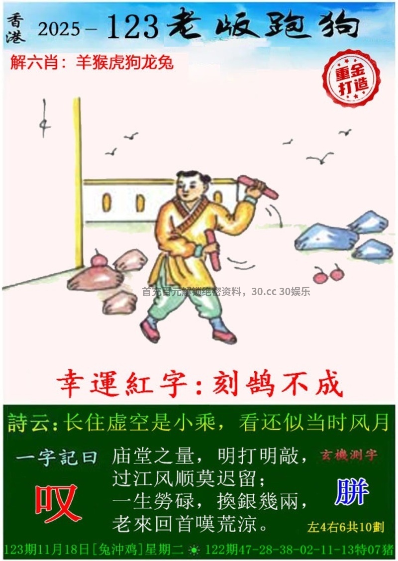 118期:今期猴龙狗看定,特碼旺双大数出开猪31准 ①杀肖:牛兔鸡 ②图解:猴龙狗猪鼠 ③双数+大数 |