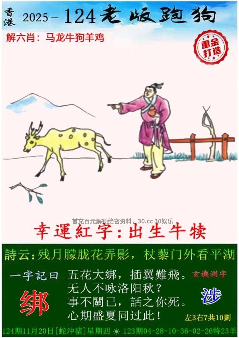 124期:今期狗鸡虎看定,特碼旺大和双出开牛05准 ①杀肖:龙鼠猴 |